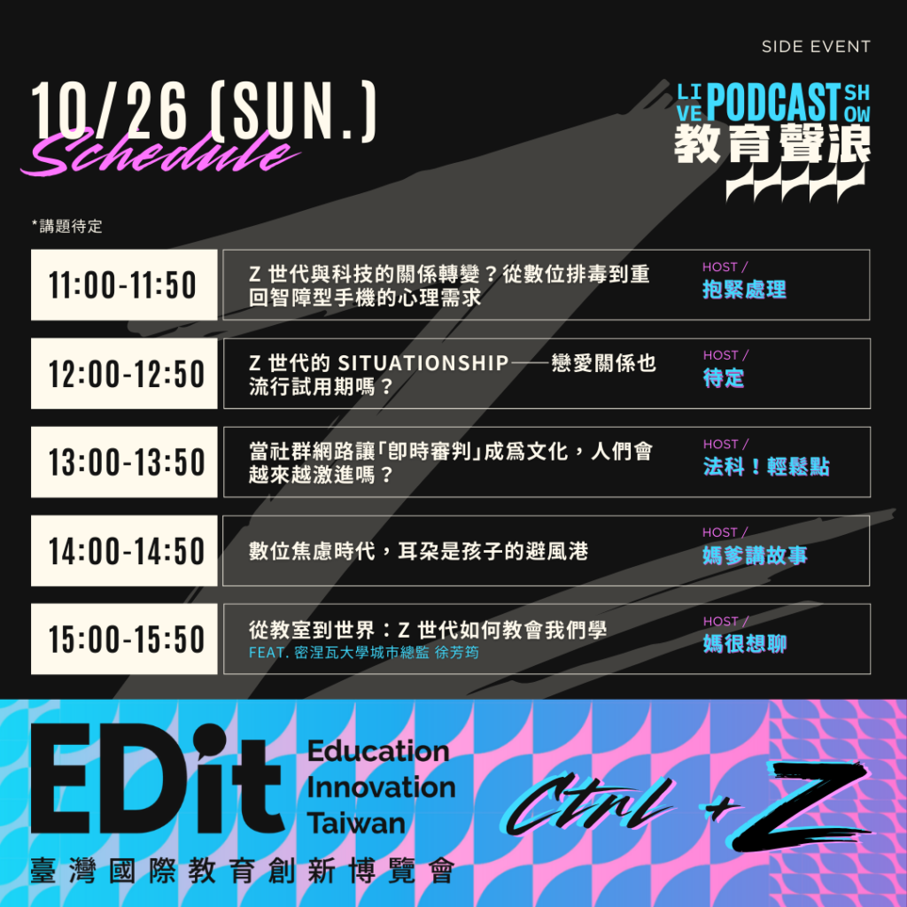📍地點:EDit 教育創新博覽會現場|教育聲浪 Live Podcast 專區 (大舞台)